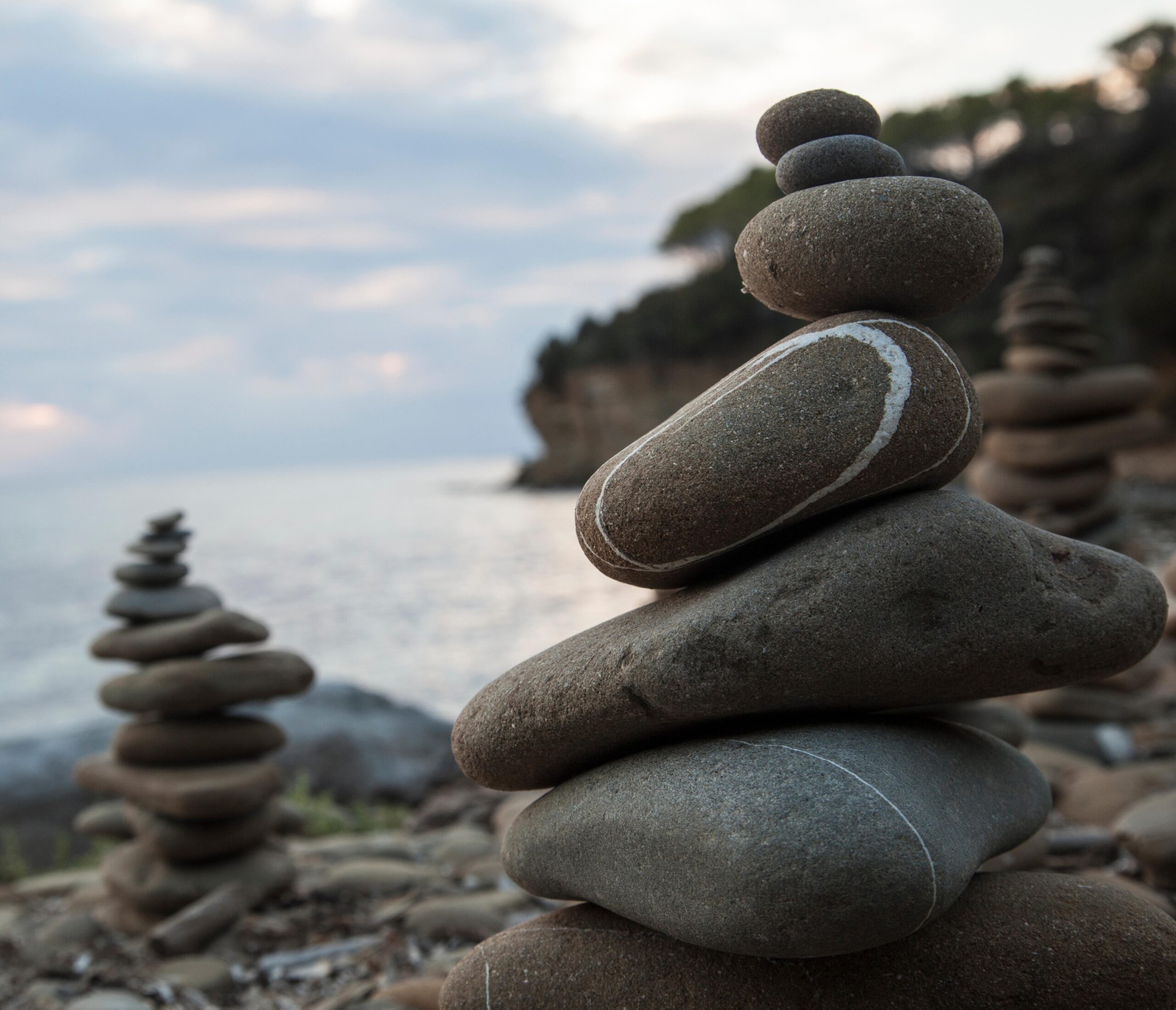 Welcome » Pile of pebbles in balance at sunset